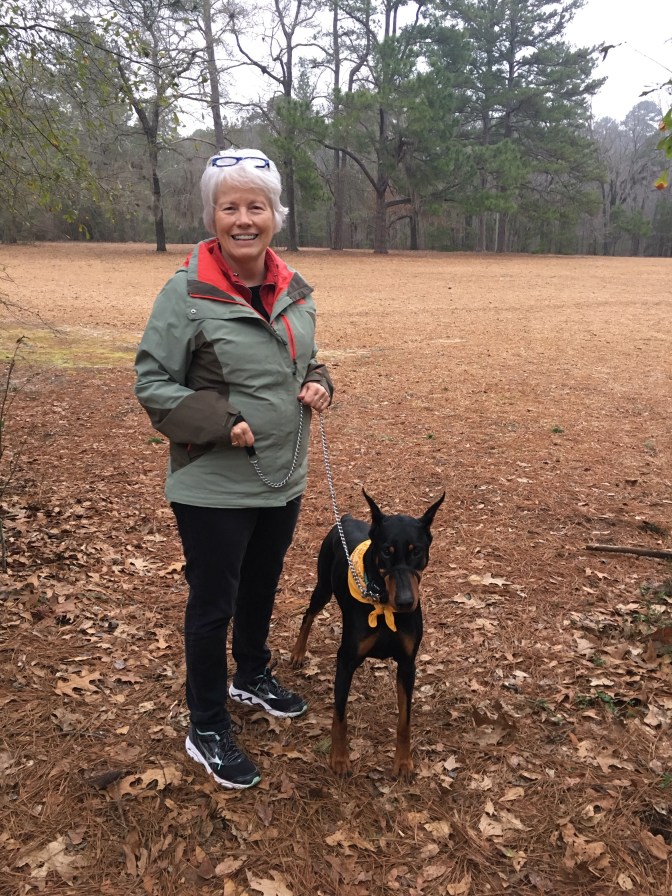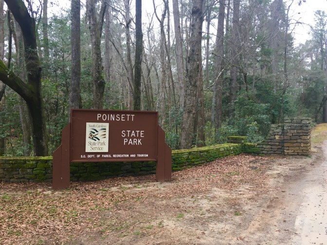 We made it to Pointsett State Park around 4:00 just missing the crew before us…fire was still going. We will be staying here 4 days. Nice level site and very few fellow campers. So much sandy soil here…I can see the broom being used quite often on this trip. Onyx loved running in the big field in front of our site. Before dinner we placed our SC state sticker on the USA map Chris and Michelle and the kids gave us. (Selfie taken with a cool new gadget Ryan, Leslie and family gave us for Christmas…a Yoozon selfie stick.)