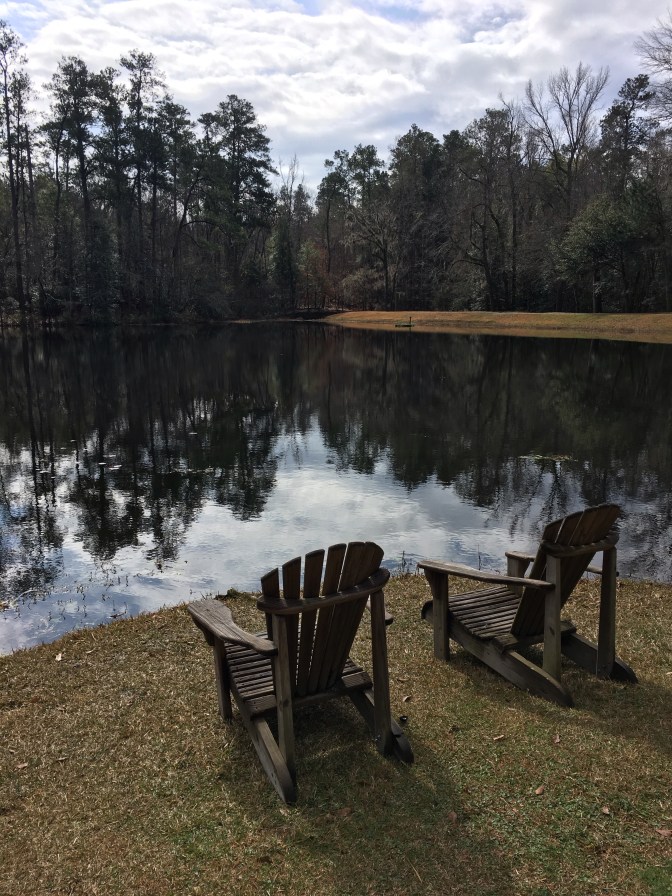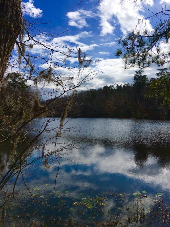 Surrounded by the Manchester State Forest this is a fairly small park but it is not without its surprises. One of which are the mountain laurels like we have at home, except these are dripping in Spanish moss. We found a small pristine Pond with nice Adirondack chairs by the bank and one thing that I particularly am fond of…heated bathrooms. Although we have a shower in our camper sometimes it is just nice to step into a life sized shower and enjoy. 😃