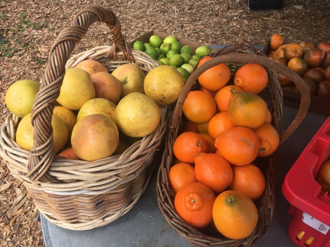 Wednesday-February 27…This hike ended up being around 2.1 miles…A relief from riding a two wheeler! We had the trail to ourselves! So nice! As soon as our hike was over, it began raining. We stopped at a wonderful little stand on the way back to the camper. Harry had been hunting for Honey Bells and he hit the jackpot. ( We chose just a few of these on display!😋)
