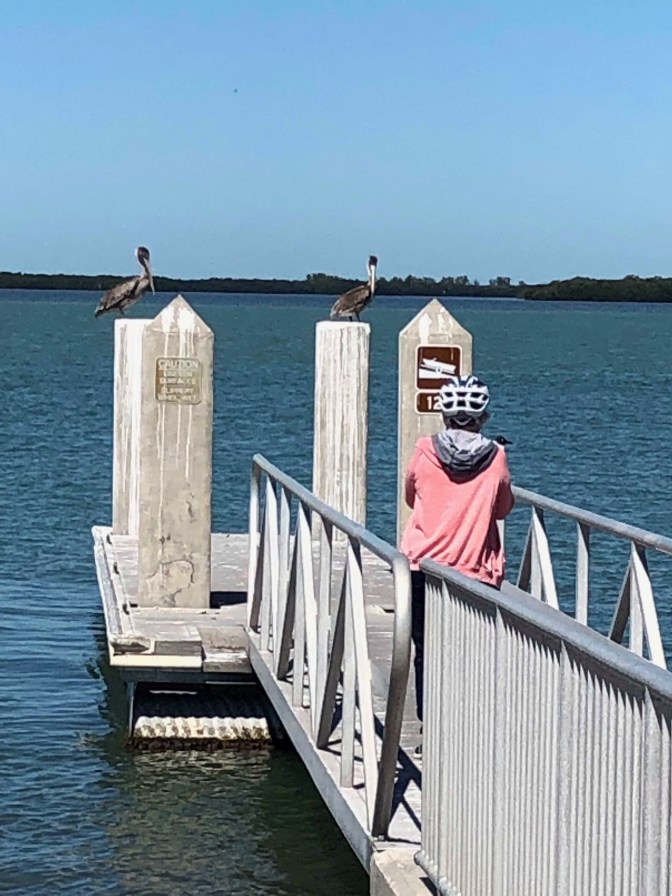 First thing this morning we biked. We experienced a lot of resistance as the wind was blowing quite a bit. Dodging down to the boat ramps gave us a respite from the wind and we got to watch the pelicans dive for their breakfast. Never could capture one of those on film, I had the wrong camera.