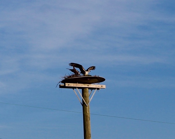 Lastly, as we were leaving the beach we saw an osprey nest on a platform. Noticing one of them flying into it we stopped and I got these pictures!