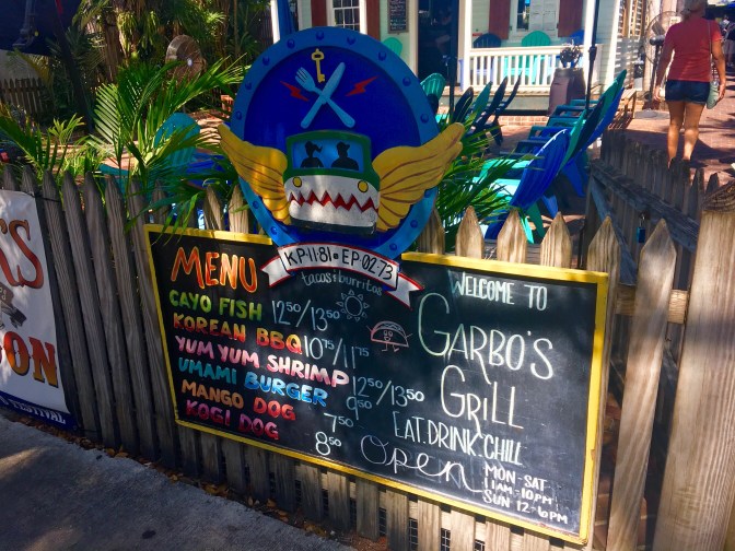 Then on to Key West and the airport! We thought our flight was at 12:00 noon but when we arrived…we were told we had been changed to the 2:00 flight because we would enjoy it better. No cruise ships visiting at the time. They said, “Trust us. You’ll be glad.” Key West for lunch sounded good. Thanks to Trip Advisor… We found a little hole in the wall food truck. Yummy food!