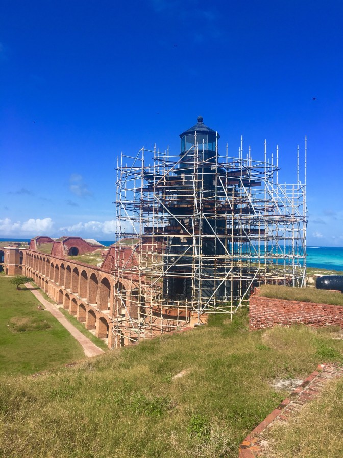 The Garden Key Lighthouse is below. It had some damage during the Irma Hurricane in 2017, as well and they are working on it. I found it interesting that it will be taken down in three parts and shipped off to the east coast somewhere to be repaired and won’t be brought back until after this year’s hurricane season.