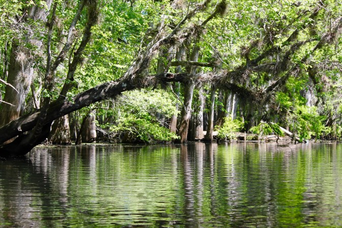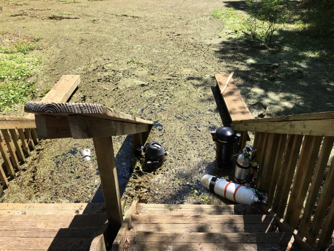 We were able to speak to two divers who had just finished a cave dive. They were excited, as they had gone a little under 2 miles in one of the cave rivers. If you are cave certified you are allowed to use head lamps and they also carry lights in front of them. If you aren’t you may use no lights…This is in an effort to keep more people safe…not trying something for which they might not be ready. They also said the water under the covering of vegetation, that I thought was so ugly, was a bright turquoise and there were many fish swimming around. If you want, you can go to YouTube and look up Manatee Springs Cave Diving and these guys have some videos you can watch. They wanted me to imbed their video but that is over my pay grade.
