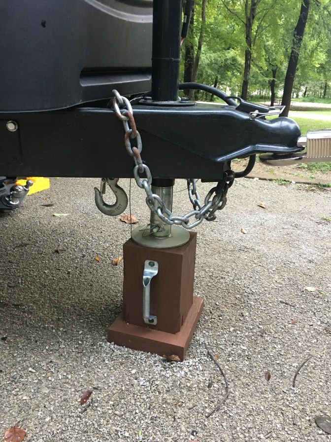 David Gasaway fashioned this tongue stand. It is working like a champ. He was worried it wasn’t the right height but at Tippecanoe River State Park, Harry had to dig it in a couple inches and at Nolin it was the perfect size.