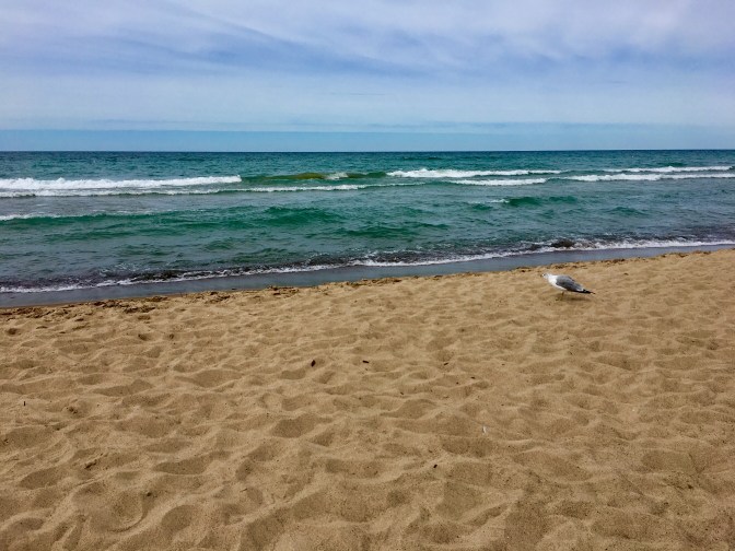 Our trip down to the beach was short but the one thing I had forgotten was how big the waves are on this lake…and how many skipping stones you can find.
