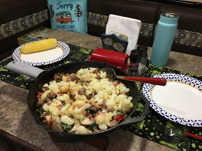 Dinner was a quick skillet dinner using Karey Spear’s recipe with a few additions and omissions: