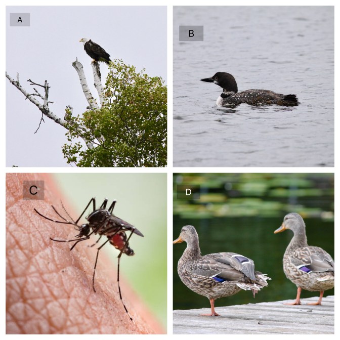 The answer is B, the loon. Even though I have dealt with the gigantic mosquito in Minnesota, up close and personal. Ouch…. They loved me! Lol