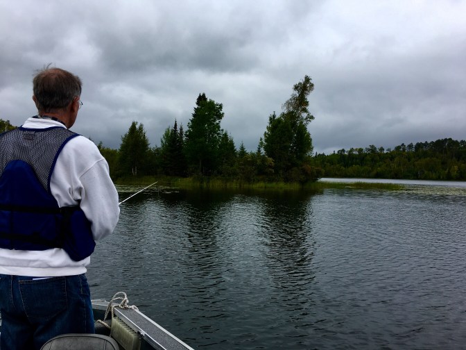 If we had all the time in the world, we might have stayed in and played games today. It was cold and drizzly. But being the gung-ho fishermen that we are and because we had promised the next contest…we set out towards the south end of the lake, looking for fish and birds for me to photograph.