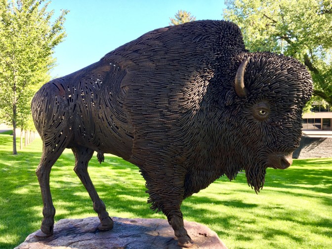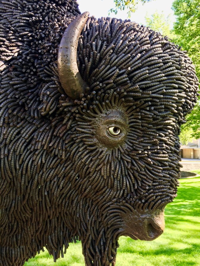 This buffalo sculpture was made with rebar rods. Beautiful. Saw another I will share later.