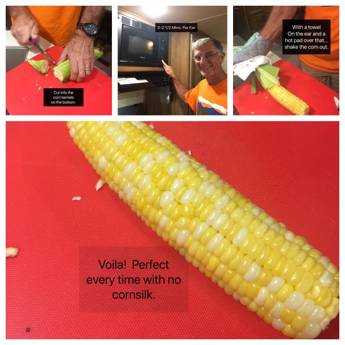 I told you I was sharing a little bit of this and that today…Our friend, Ruth Ann shared this corn secret with us several years ago and it works like a champ every time. I think she puts hers in for 4 minutes but our microwave does great with 2 1/2.