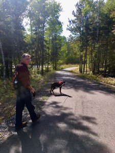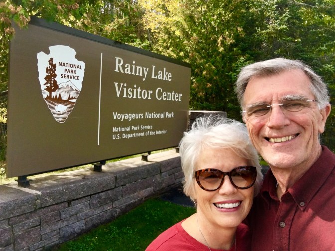 Our last National park of the trip is Voyageurs in International Falls, MN. We went today for a hike after church…Glad we stopped in to the Visitor’s Center because we found out some things we weren’t expecting…Onyx can only walk on the bicycle trails -no woodland hikes. And we also found out our 7 hour boating trip planned for Wednesday had been canceled.😳. A private outfitter at Arrowhead Resort. ( common name…not the Arrowhead Point you heard about earlier) gives tours and Harry signed us up for one tomorrow. It is supposed to be as beautiful as it was today and it was in the upper 70’s. We also found out one of the Visitor Centers was closing for the season tomorrow.😳