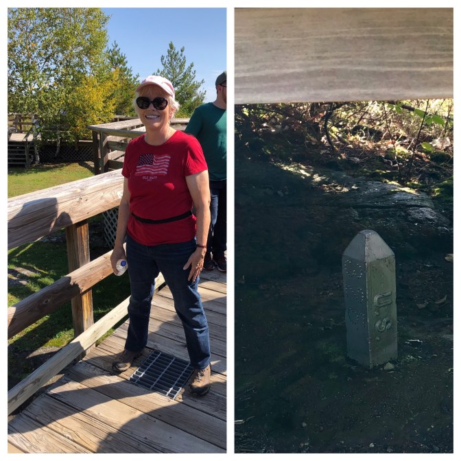 This is also where you can stand and have one foot in Canada and one in The United States. Harry walked under the bridge and looked at the grate I was standing upon and took a picture of the marker directly beneath me..