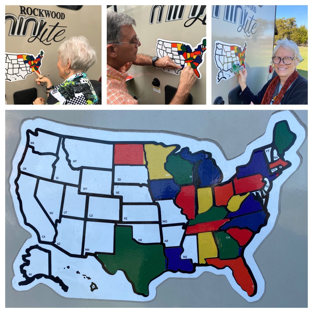 The map is filling up. Our rule…you can only place a sticker if you have camped in that state.