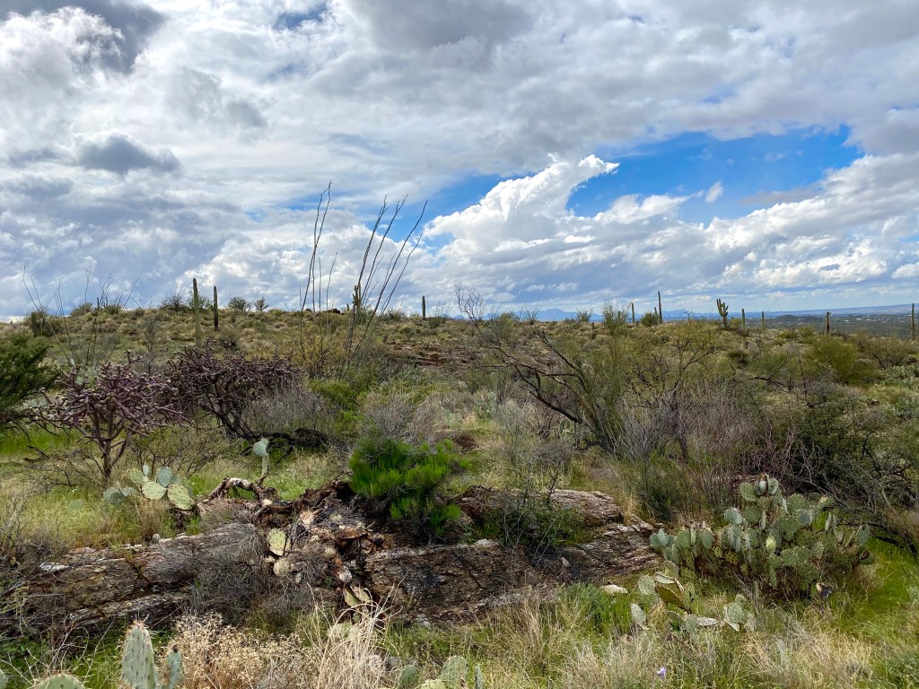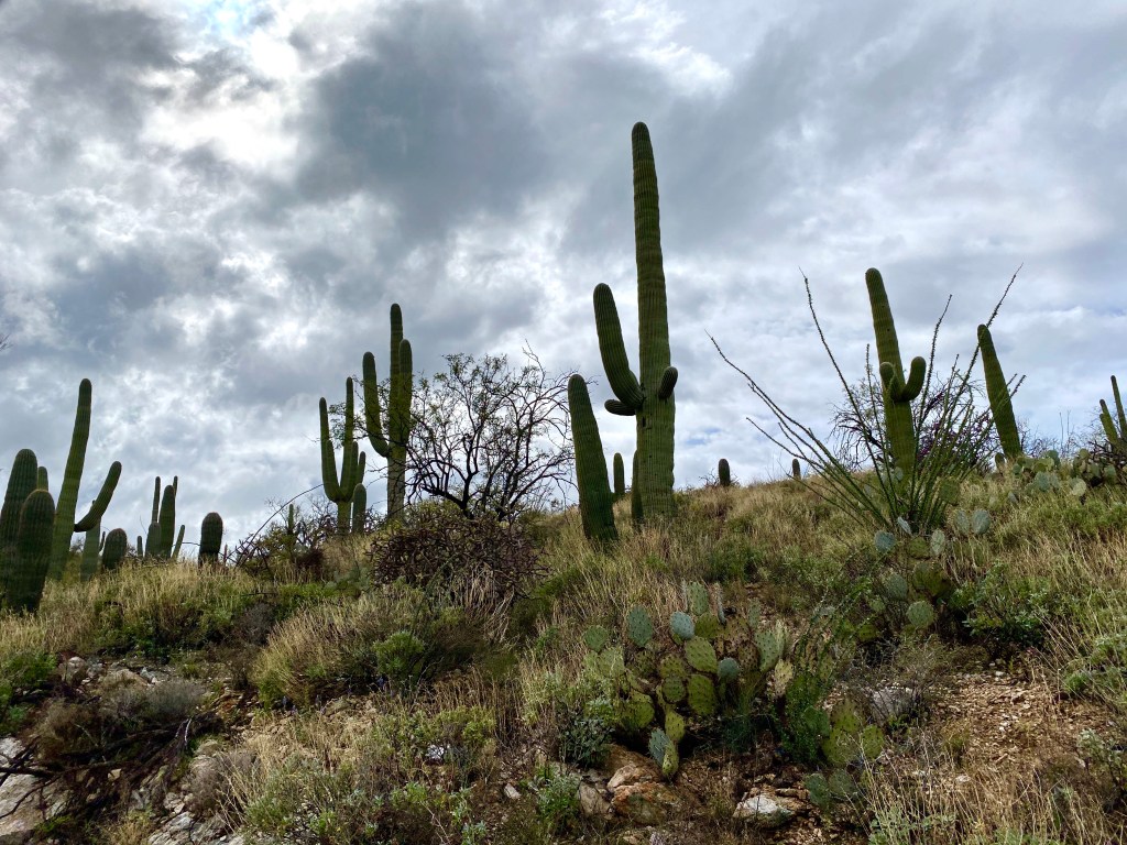 Similar to several national parks, Saguaro has 2 sides…east side of Tuscan and the west side of Tuscan. We did the west yesterday and today was the east… we had a rainy evening and morning and didn’t get out until the afternoon. We had a private Lenten service in our camper for church, had lunch and headed out. You will notice this section is much greener so the cacti don’t stand out as much as on the west side. Now how much the rainfall played into that, I don’t know but we had already been warned the day before that it would be greener. I will let the pictures speak for themselves.