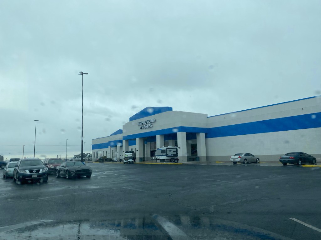 Just a little update on today…drove through some rain and wind and finally landed at Santa Fe Skies Campground but not before stopping at a Camping World to have them change a tire that was wearing on our camper.