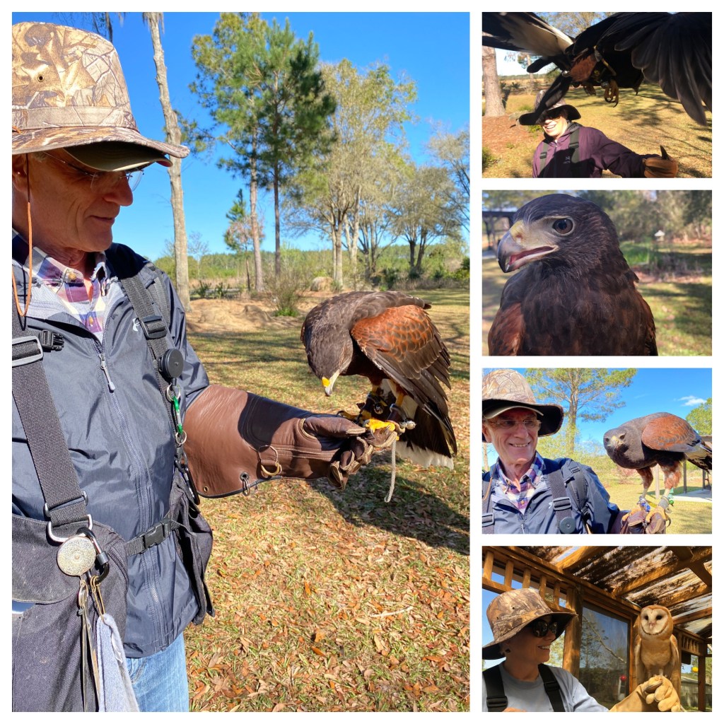 We primarily worked with Harris Hawks but we also handled and fed a Red Tailed Hawk and 2 Barn Owls! For a total of 8 raptors.