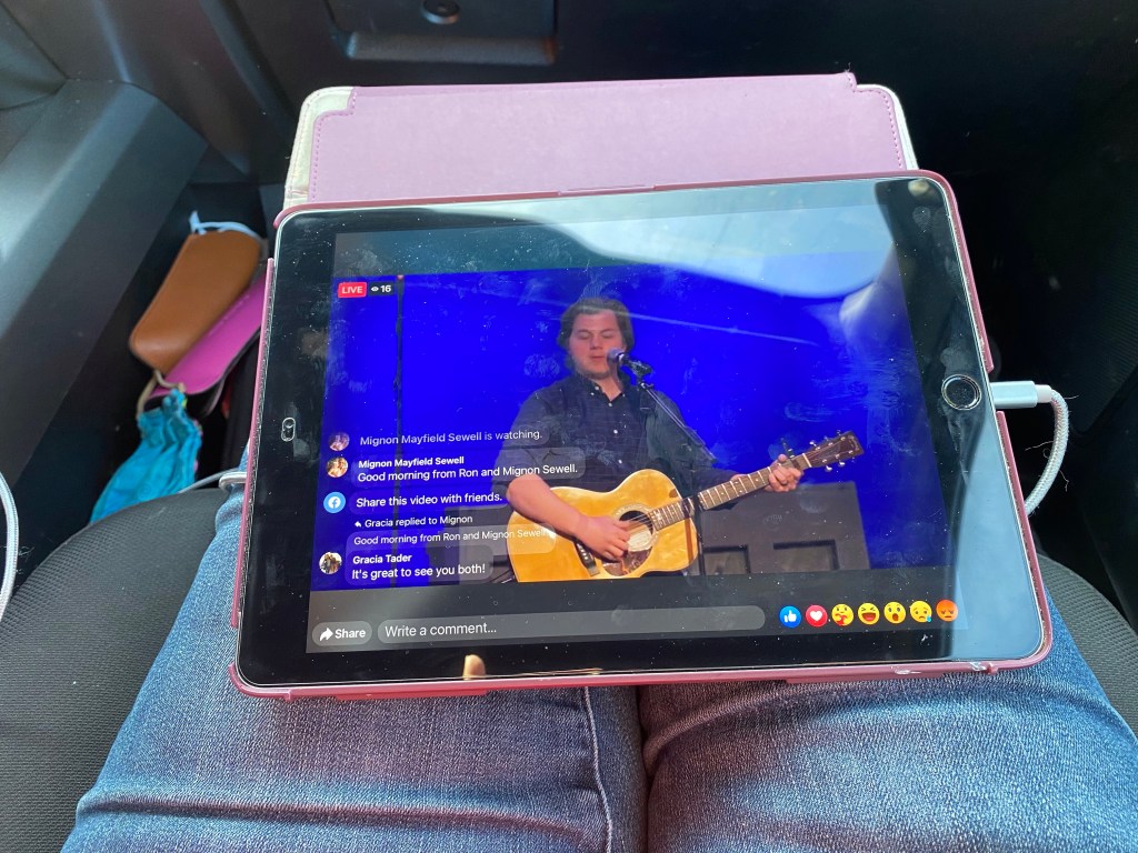 When planning our trips, Harry tries not to drive on Sunday but sometimes it just can’t be helped. Today we joined First Christian Church on the road! Since Covid, it has been so nice to be able to gather along with others across the town and country to worship God all together!
