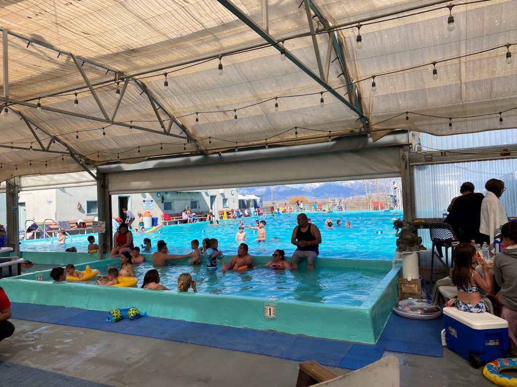 The name of the campground we are staying in is Sand Dunes Recreation. It is pretty quirky but when you get here it makes perfect sense! It is built around a hot springs swimming pool and the locals visit it regularly. Harry really cannot do the hot temperatures so rather than pay the $30.00 admission, we took a tour of it and I was the nosey lady taking pictures of people in their swimming suits! Boy was it crowded! The water runs about 90 degrees. They also have soaking tubs…the highest in temperature was 110 degrees. If we were there with kids…no doubt we would have had to make a visit to the hot springs. But as it is we passed!