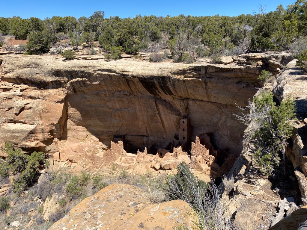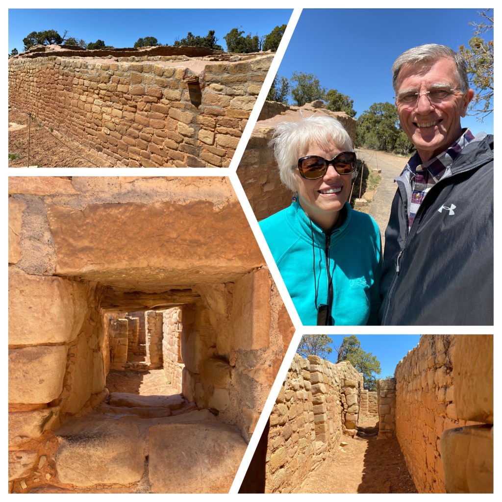 We headed to Mesa Verde today. While teaching third grade there was a whole chapter dedicated to the Anasazi, the culture, customs and geographic area. I fell in love! They are now referred to as Ancestral Pueblo Peoples. Our first family trip with the family after our sons had married was to Durango and Mesa Verde. We made such great memories. We thought it would be fun to revisit. Surprisingly some things had changed. Certain early ruins have been actually covered within buildings that can be closed down in the winter and are now protected from eroding weather. They were not giving tours into the actual dwellings like we did last time. I think they will start doing that again in June. Due to Covid and early spring many things are not available. But the weather today was 55 degrees and warmer in the sun and any more, we don’t do well with the weather and crowds that we might experience in June.