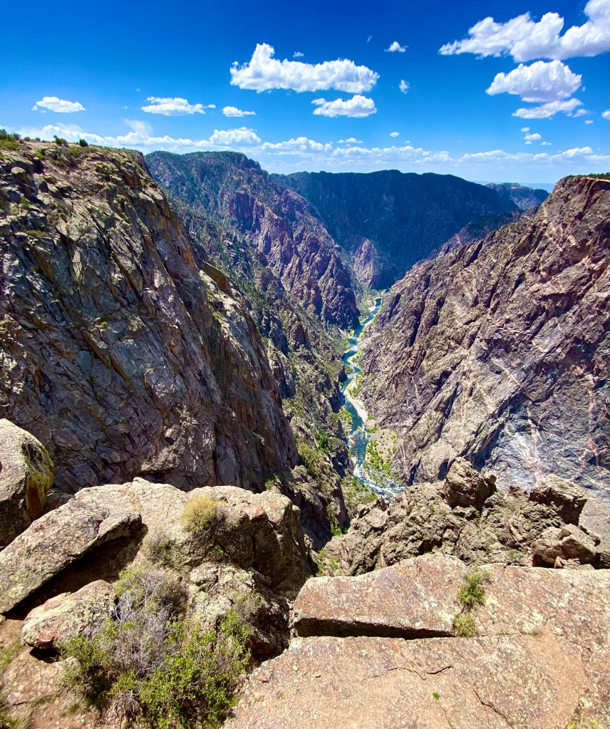 We hiked a bit last night and then most of the day today. This is one, wild and crazy canyon! The steep walls of the Black Canyon range in depth from 2700 feet north of Warner point to 1750 feet. There are places that are less than a quarter-mile across..