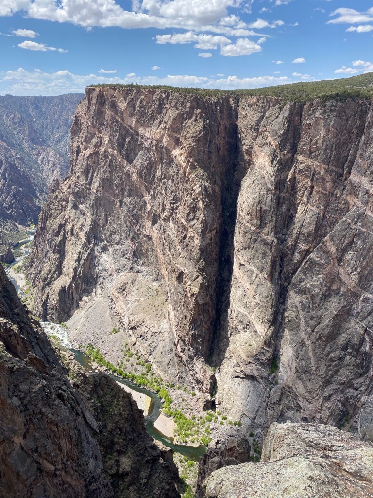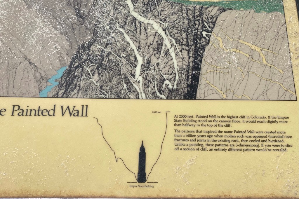 We opted for many short hikes around the rim rather than going down into the canyon. Besides both of us feeling the altitude…Going down into the Black Canyon required a permit, a short talk with a Ranger, it takes all day, the trails are unimproved and the kicker, for me at least, somewhere on that trail you had to navigate an 80 foot chain welded into the rock face.😳