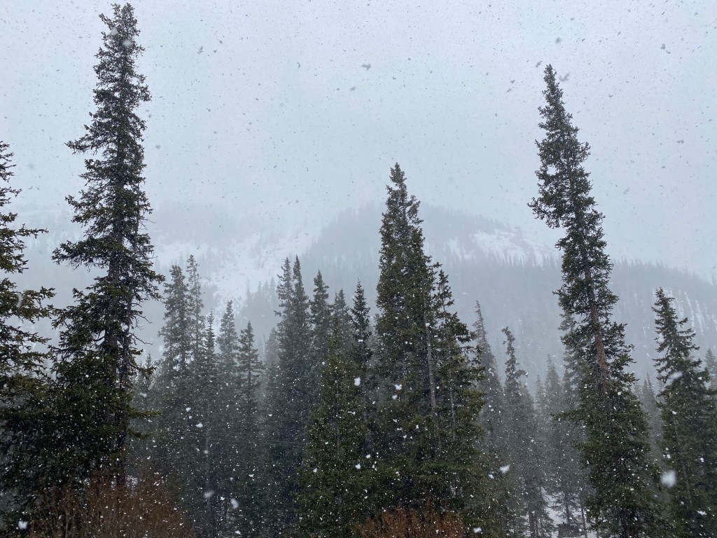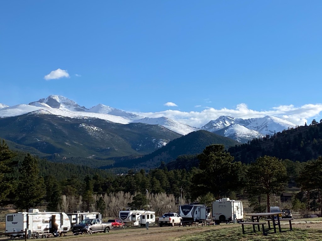 At last we landed at Elk Meadow Lodge and RV resort! This is a view from the front of our camper! I think that snow is beautiful from a distance.