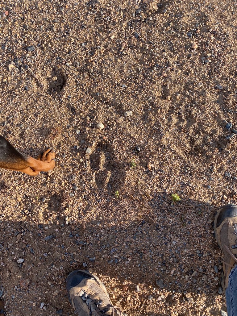I’m no animal tracker. But Onyx and I were sure wondering if this wasn’t an elk hoof print.