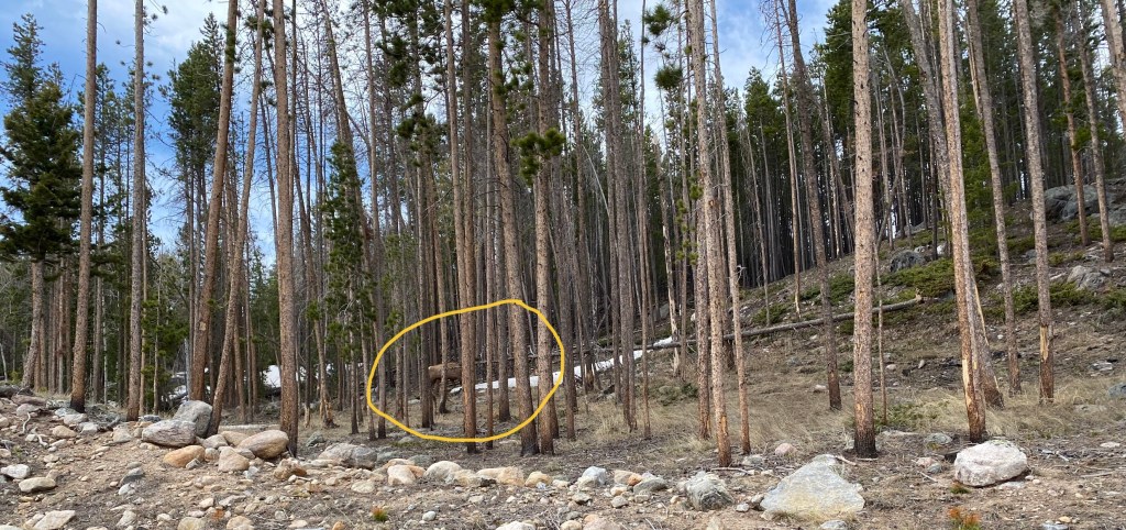 Camouflage is a funny thing. There were at least three elk moving in a line but I can’t find them here.
