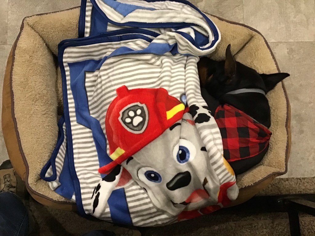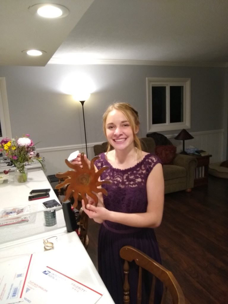 Our granddaughter, Kaitlyn received her Utah hand crafted wall art on the day she was headed out to the Prom!Onyx became a member of the Paw Patrol when the weather got so cold at night she needed a little help keeping warm.We stopped in…wait for it…Nowhere, Nebraska to refuel. Cray name!This is where we are camping tonight…site complete with our very own lilac bush in bloom! There is a beautiful lake here and they are equipped with a fish house for cleaning fish…it must be good fishing!