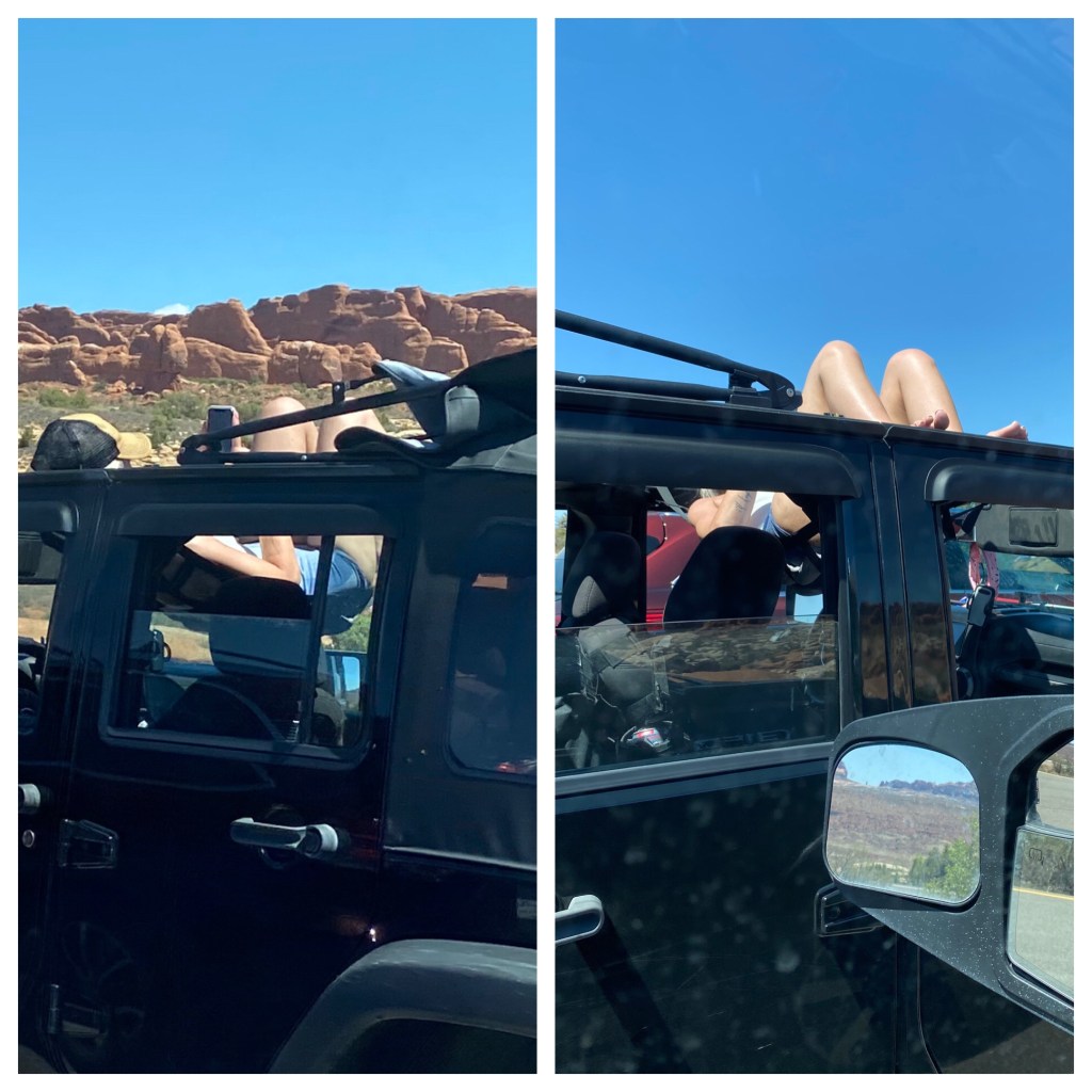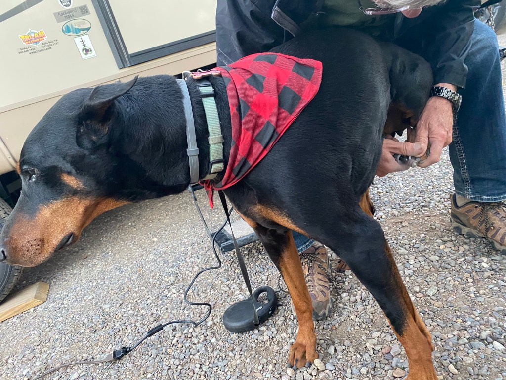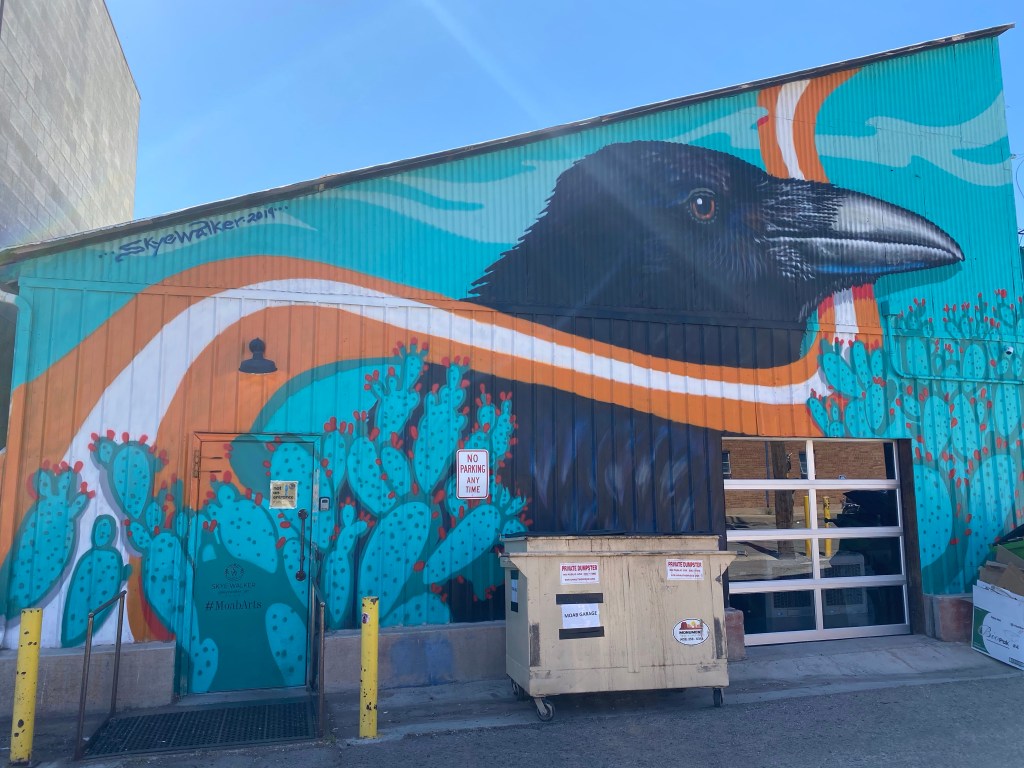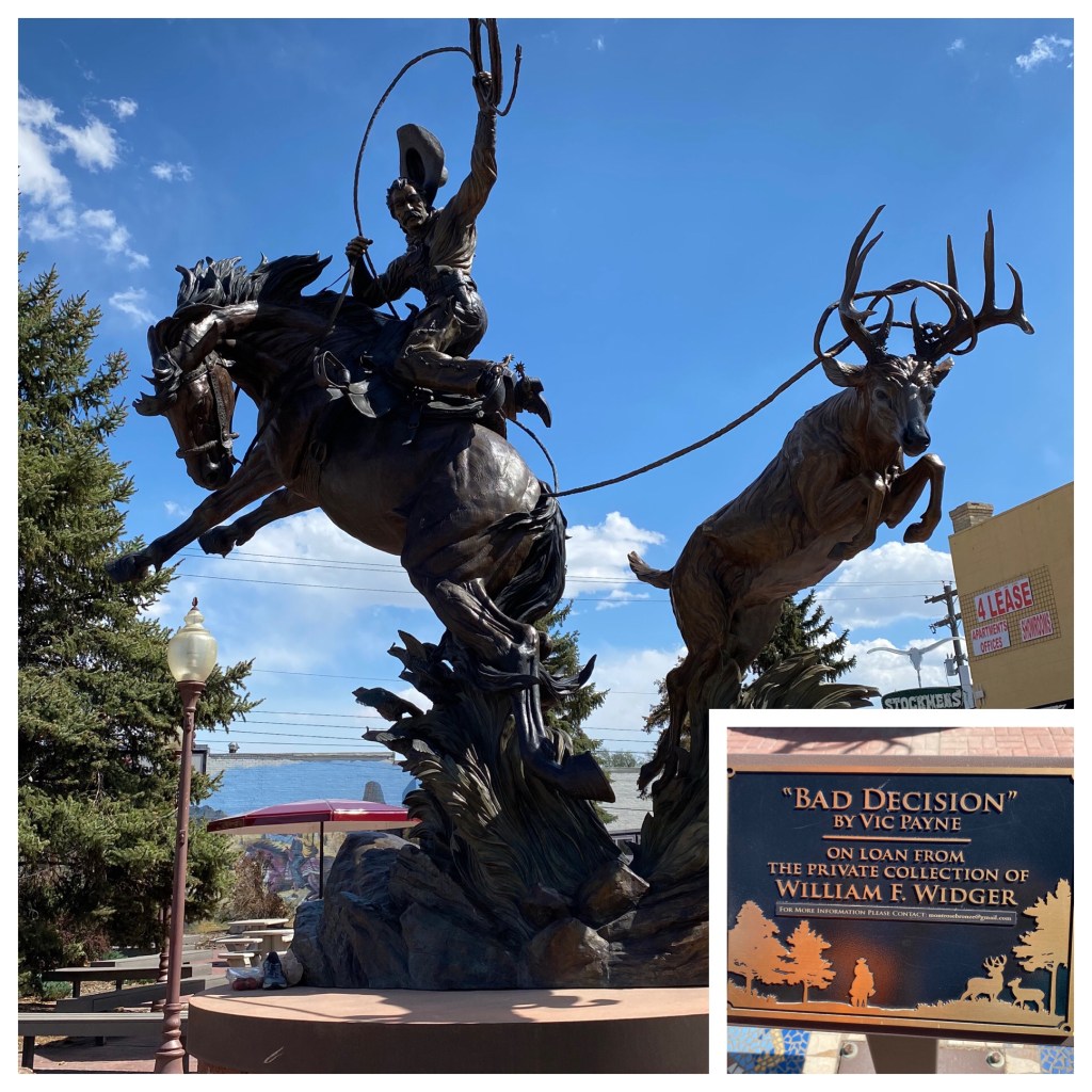 Did you know a sling hammock is an accessory for your Jeep? A place to read and get a tan, while everyone else hikes.Just a couple of unusual gates.I imagine this truck belongs to a soldier. I would be interested in knowing the story behind his hood ornament. Might be a sad story?We enjoy sculpture and this made us smile! Can be found in the city of Montrose,Colorado.OK. I over- rode Harry’s veto of showing this. It was in one of our National Parks. We have traveled overseas but to find this in the US was surprising. What are the handrails for? So low. Oh, well, that’s enough of that.We thought our son, Ryan would enjoy this sign we found on the road in Capitol Reef! Several years ago he spotted marmots playing around a vacation home we were staying in in California!At the Wonderland Campground in Torrey, Utah… you can rent a Conestoga wagon to spend the night.By the way, the Sawicki girls found their geo cash we had hidden for them! A video below!You are so welcome! Great job!This was painted ON THE BACK of a store. The ravens have entertained us and I just thought it was cool!I know you were wondering if Onyx ever had her nails worked on while we are on the road. Yes, Harry uses the Dremel Drill/ Sander on them once a week.