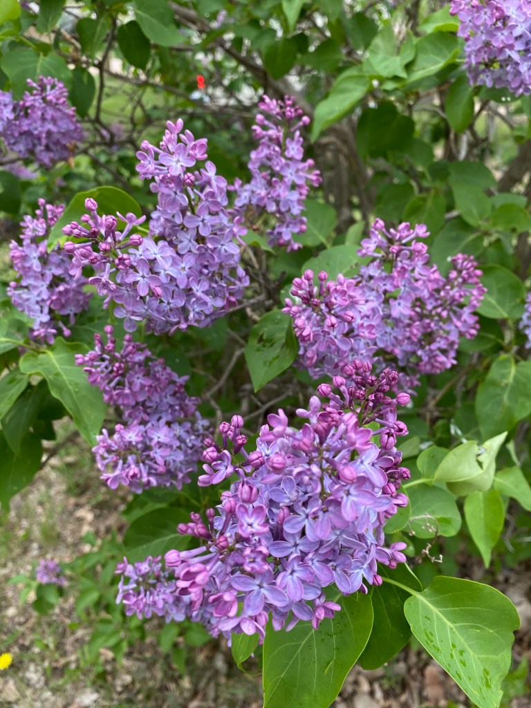 This campground has a variety of different flowering bushes but so many lilacs and different colors…pink, deep purple, white, lighter purple like ours! Smells nice!