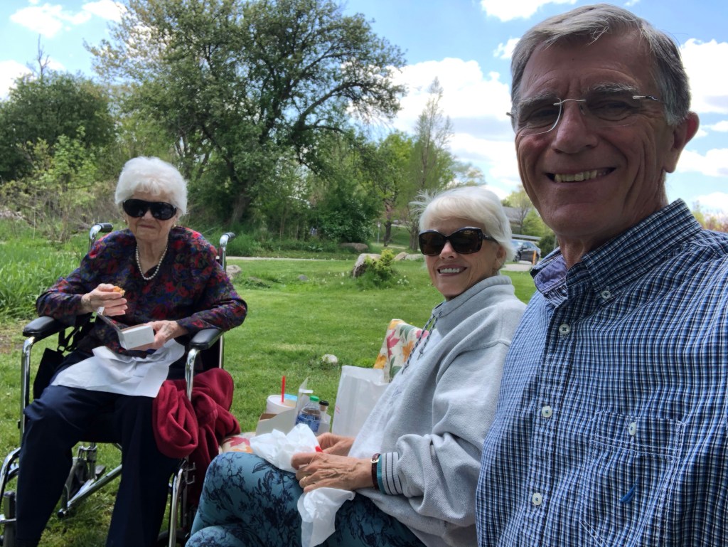 Arriving home Mom was ready for an adventure, so we grabbed lunch at Chic-Fil-A and hunted for a place to picnic. We found the perfect bench at Pioneer Park! We are so thankful the weather was in full out spring delight.