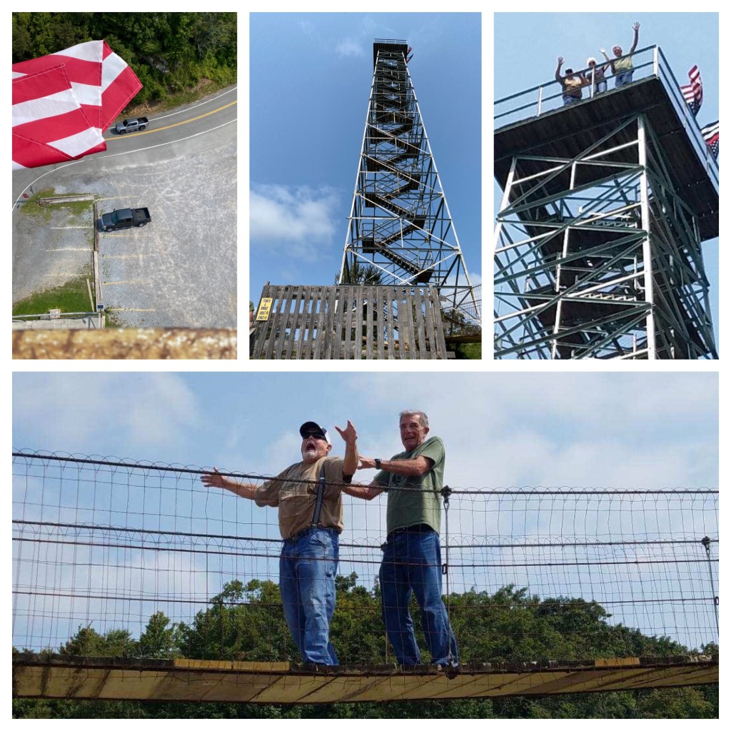 Certainly not the world’s largest pencil…(I looked it up.) but it is the biggest I have seen!Sunday we attended our home church via the internet! We were excited to hear our granddaughter bring part of the sermon to us. Student Take Over Sunday!We climbed the fire tower…Ten flights. On 9/11 the volunteer firemen climbed the tower 11 times…sometimes carrying children who were afraid to climb it alone. Top left…Our truck down in the parking lot looking from the top of the tower.The only scary part of the climb is that once you were at the top the wind was blowing so hard, I felt like I had to hold on or be carried away! Dave barely kept his hat on!We introduced the Gasaway’s to several new games, one of which was Rubber Chicken throwing! Our roosters ruled the roost on that game.