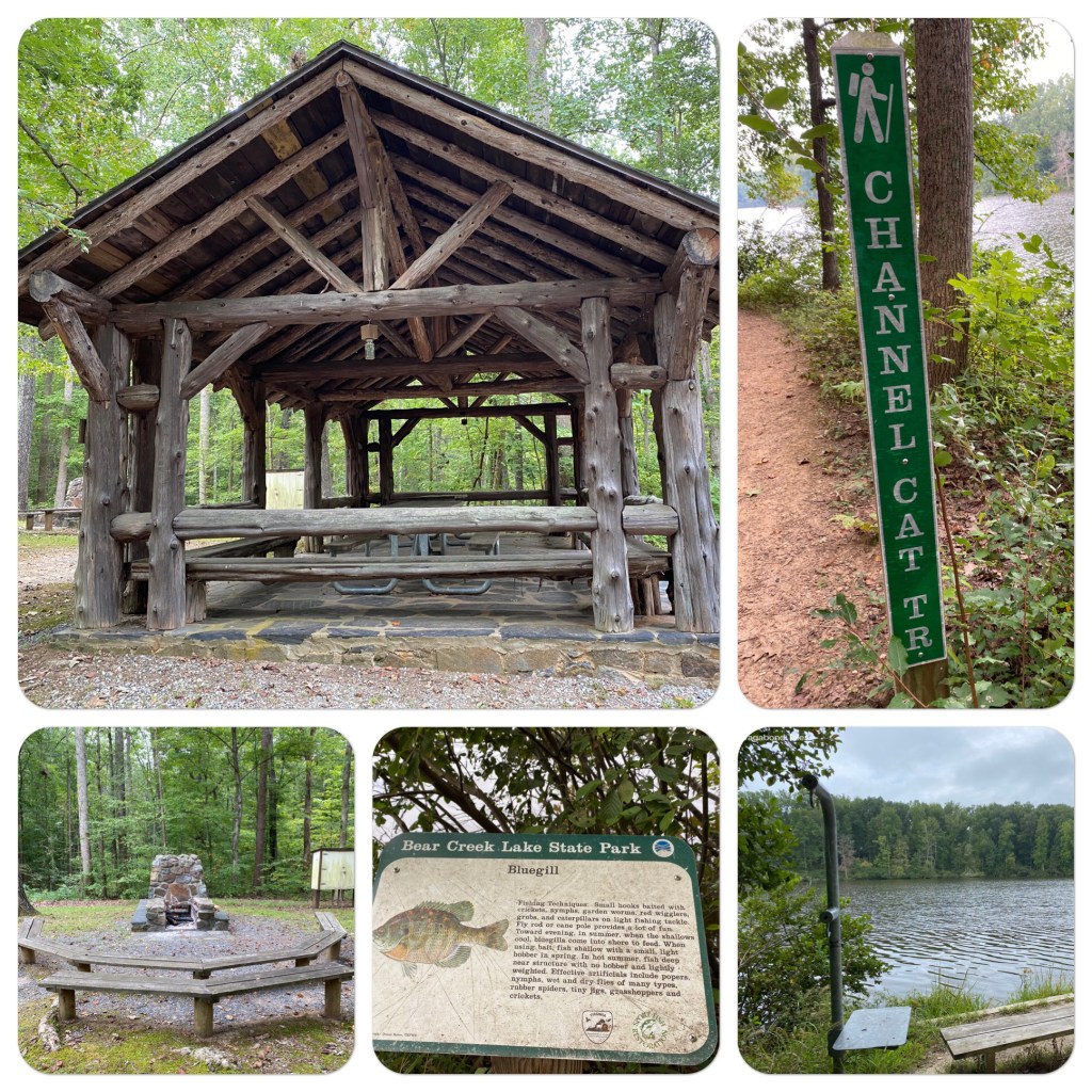 Seems if you are interested in fishing, this might be the park for you. They have built the Channel Cat Trail around the lake…adding benches and resting places for your tackle-box and poles. Instead of woodland identification signs, they have placed fishing guides and advice for catching each type of fish found in this lake. The CCC built this park back in the 1940’s from worn out farm land. They reforested it and now it is a woodland wonderland. They also built the picnic pavilion and the amphitheater.