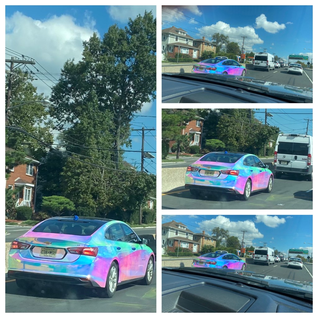The highlight of this drive day, other than getting out of New York alive was this car we passed! I think it looks like a fancy pedicure on wheels! I sent it to our 17 year old granddaughter and asked if it wouldn’t be a cool car to take to college next year. She has been looking for a new ride.