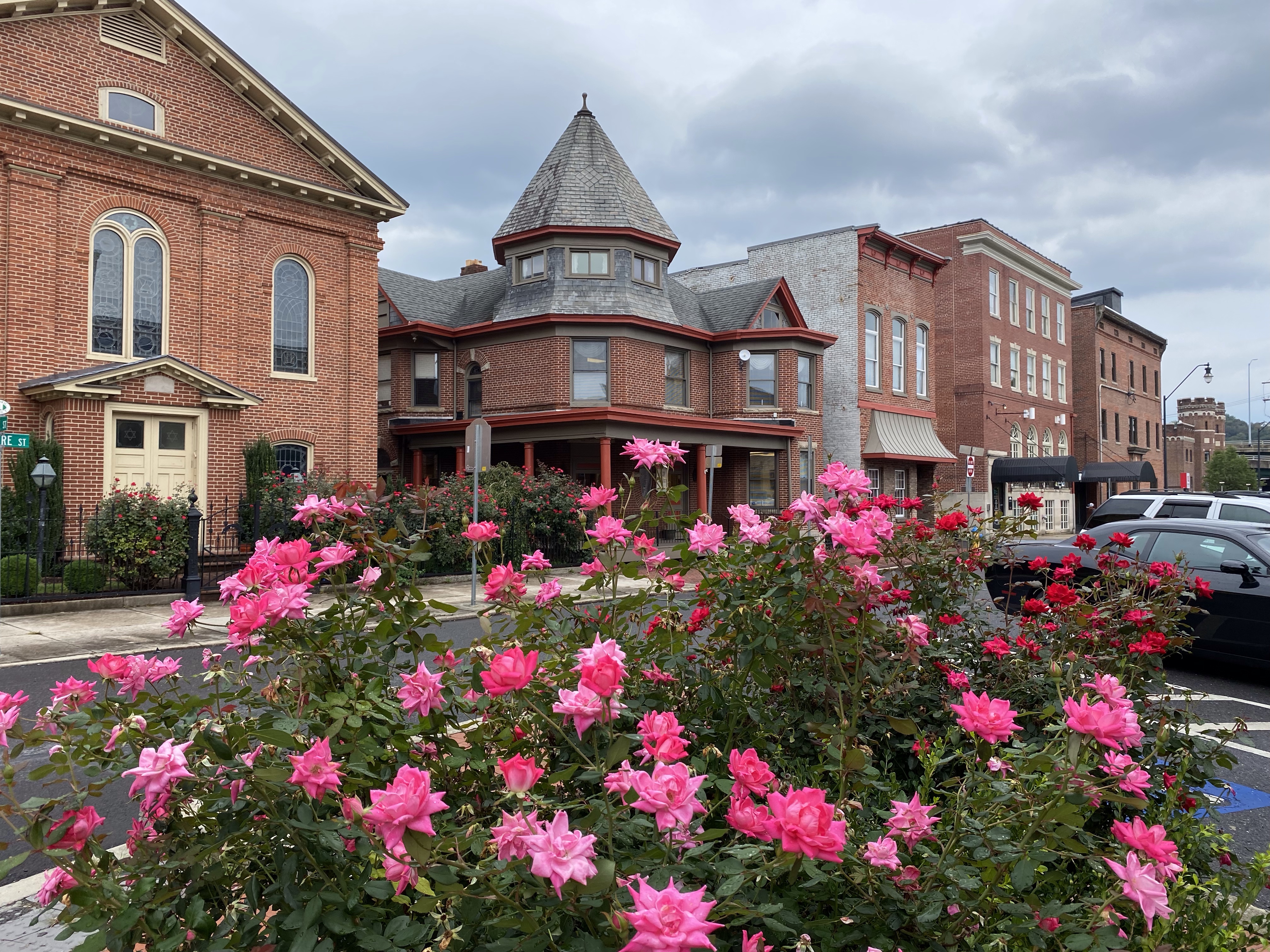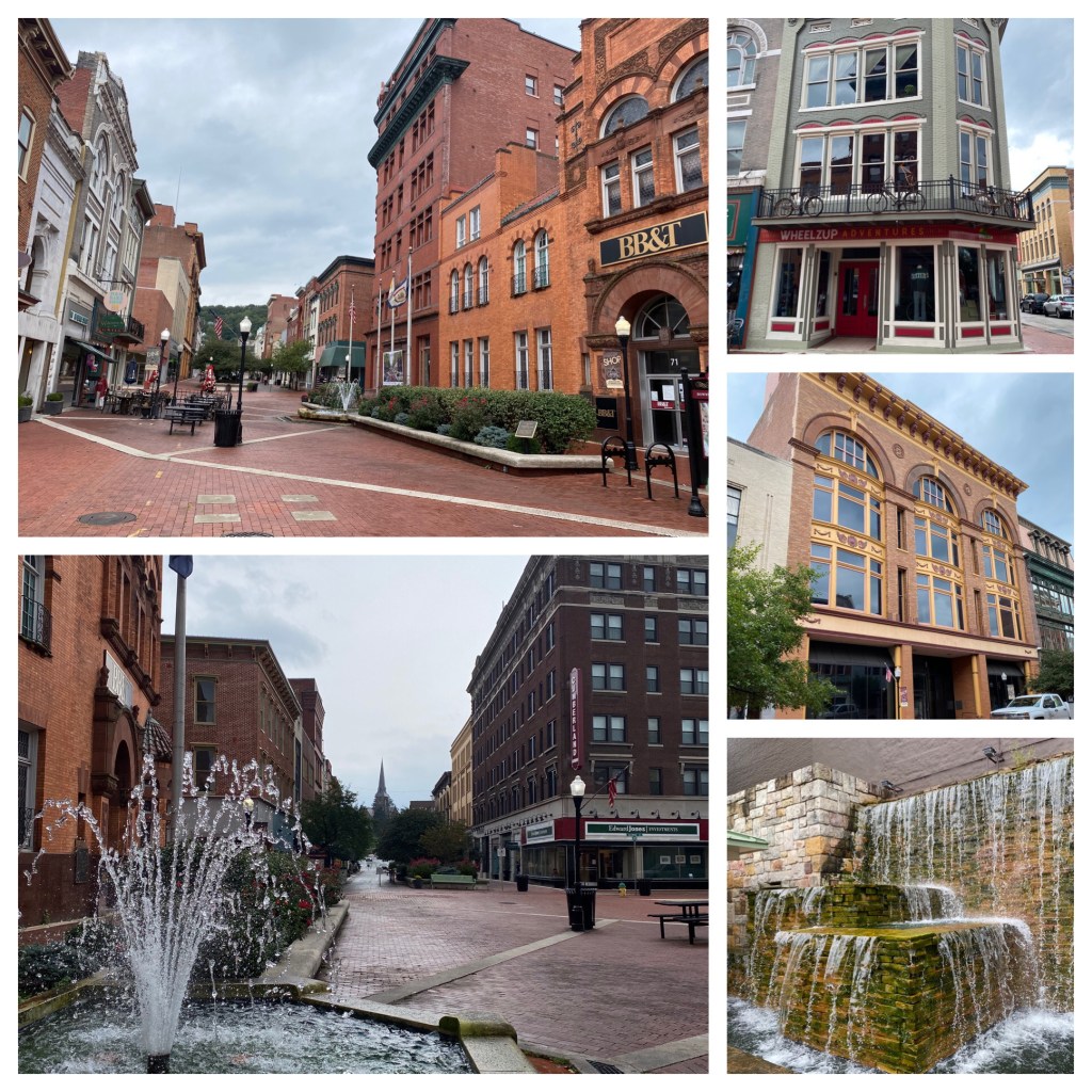 Colonel George Washington’s office when he was at Old Fort Cumberland. Harry would have been drawn and quartered for peering in his windows. Note the highway and bridges by this site…we saw our first community of homeless people here. It is near the canal and also on the periphery of the city. Near-by was the site of the first highway, dubbed the Old National Pike!