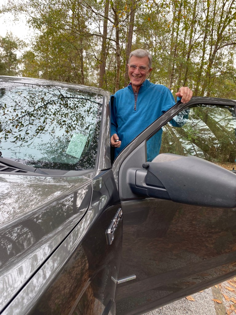 My plan was to do a ride along with Harry on the golf course. The blustery and chilly weather made me change my mind, so Harry set off to play 18 holes.