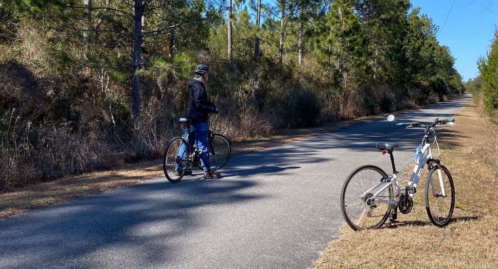 Headed back to the Black Water Heritage State Trail. The day was beautiful and bright and blustery…a bit nippy at the start. The wind helped us at the beginning going out on the trail but coming back…oh, my…I constantly had to gear down.