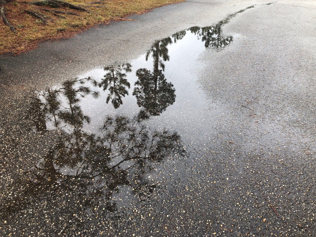 A nice picture but when I focused on the puddles along the road and on the ground..I think there is more visual interest there. Not only do you see the tree’s reflection but you can notice what lies beneath the water.