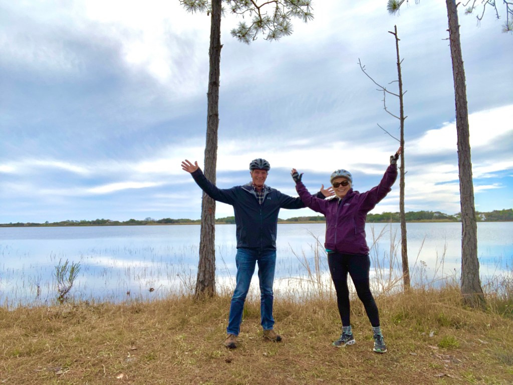 Road our bikes to Campbell Lake today. It is one of the largest coastal dune lakes in the park…96.9 acres or roughly 70 football fields. This type of lake is only found in Five places in the world. The lakes found in the panhandle are especially rare because they periodically open and close off flow to the Gulf of Mexico. TopSail is home to four of them.