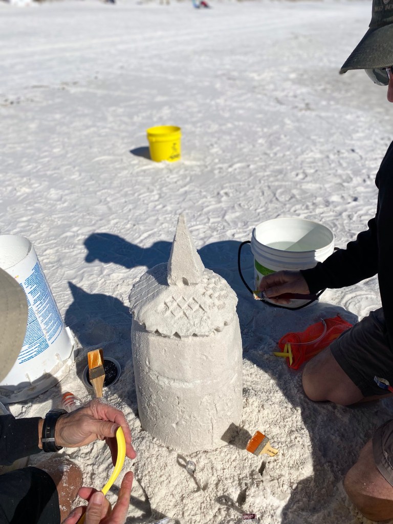Back at Kith and Kin, we looked through some of his commissioned sand castles. One large heart he had done was part of a marriage proposal. He told of one he had done of Harry Potter and a castle sculpture, he had just finished…and before the newspaper reporters and judges saw it in the morning…the large tower had completely fallen and covered up half the other work they had done. Guess we shouldn’t build our houses with or on sand, if we want them to last. Spoiler Alert! Did you know some sand artists spray their work with a mixture of wood glue and water? Some even use styrofoam to get height.