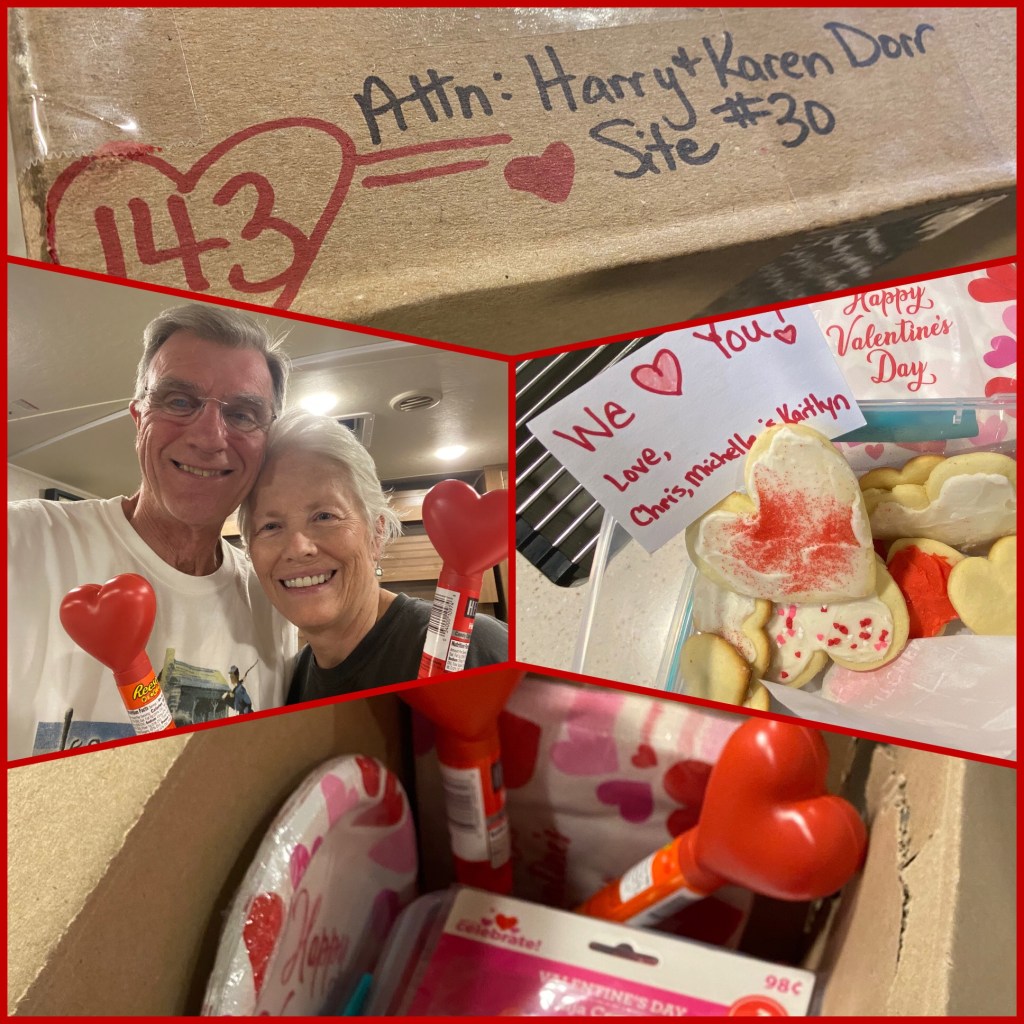 We were surprised with a Valentine’s care package from Chris, Michelle and Kaitlyn! So many yummy homemade cookies and all of the goods to have a super party! We feel loved! Thank you guys!⭕️❌
