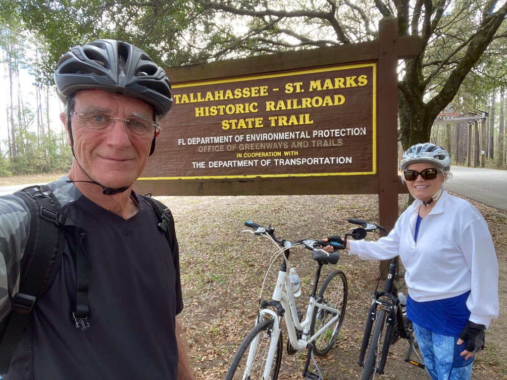 Another beautiful day in Florida! We packed up our bikes and headed to the Tallahassee- St. Marks Historical State Trail. We should have known the wind would be an issue because we had pine cones dropping on the camper this morning.