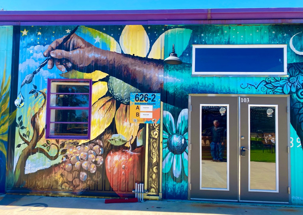 Visiting Railroad Square’s Art Center gave us an eyeful! Colorful murals abounded, as well as incense, crystals, framed bugs, antiques and strange community theaters! It was so eclectic, it made for a charming and interesting morning!