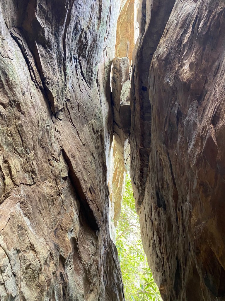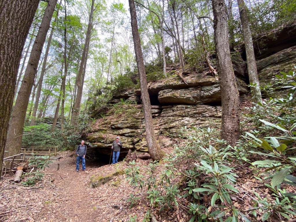 We set out in search of the Notches! The mountaineering couple from yesterday highly recommended this trail! RuthAnn stayed back at their motor home to rest her knee. She is awaiting surgery.One of my mother’s favorite spring flowers…the violet. Did I share with you the story about my mother being homesick at nurses training in Chicago in the 1940’s? She was missing her Mom and after class one day she was walking in a park and noticed mounds of violets. She had an idea that she would pick a bouquet and wrap them in a wet cloth and mail them to her mom. They arrived somewhat bedraggled but still full of love!The towers of rock begin.As we came around the corner we heard a small voice calling, “Hello, Hello.” Two women hikers had lost their map and needed help getting headed in the right direction. Here is a tip for you…If you are headed out on a hiking excursion…take a picture of your paper map or one posted on the park’s public service board. Even if there is no signal…you can still access your photos. We had them take a picture of Harry’s map and they were off!This hike equals many hikes we have done around our National parks and this one is right in our back yard. Very memorable!Squawroot making its way out of the Rocky soil. Widely used for medicinal purposes by the Native Americans!The Notches… the temperature dropped 10 degrees when we entered. Photo Credit- Dave Gasaway. Looking up from within the Notches. A delicate balance of boulders.A lone yellow violet in our campsite.