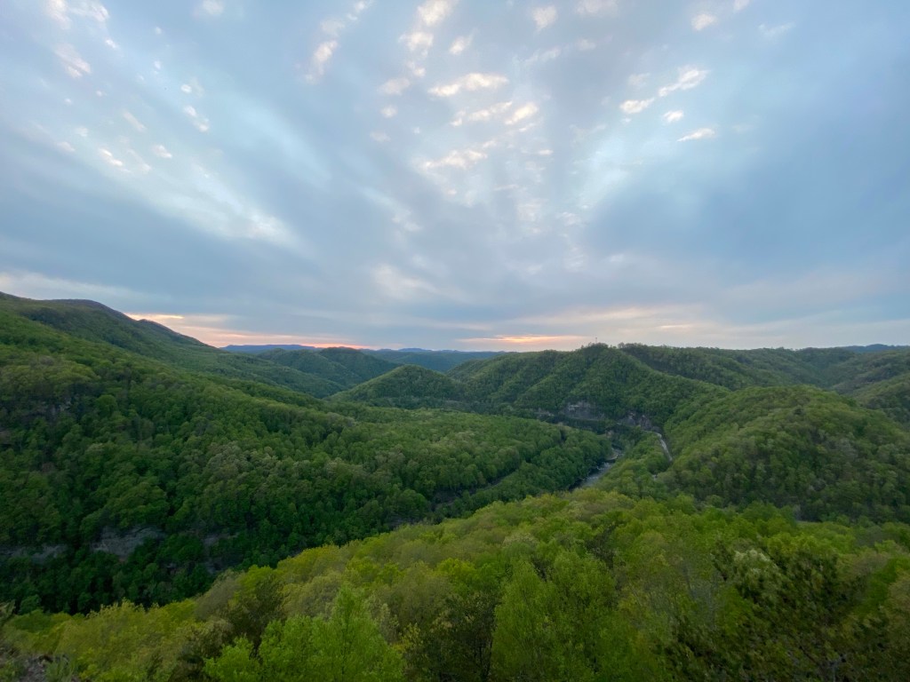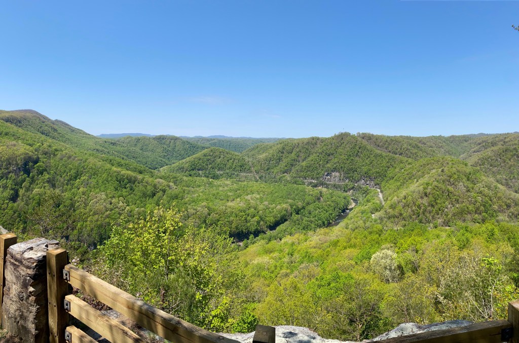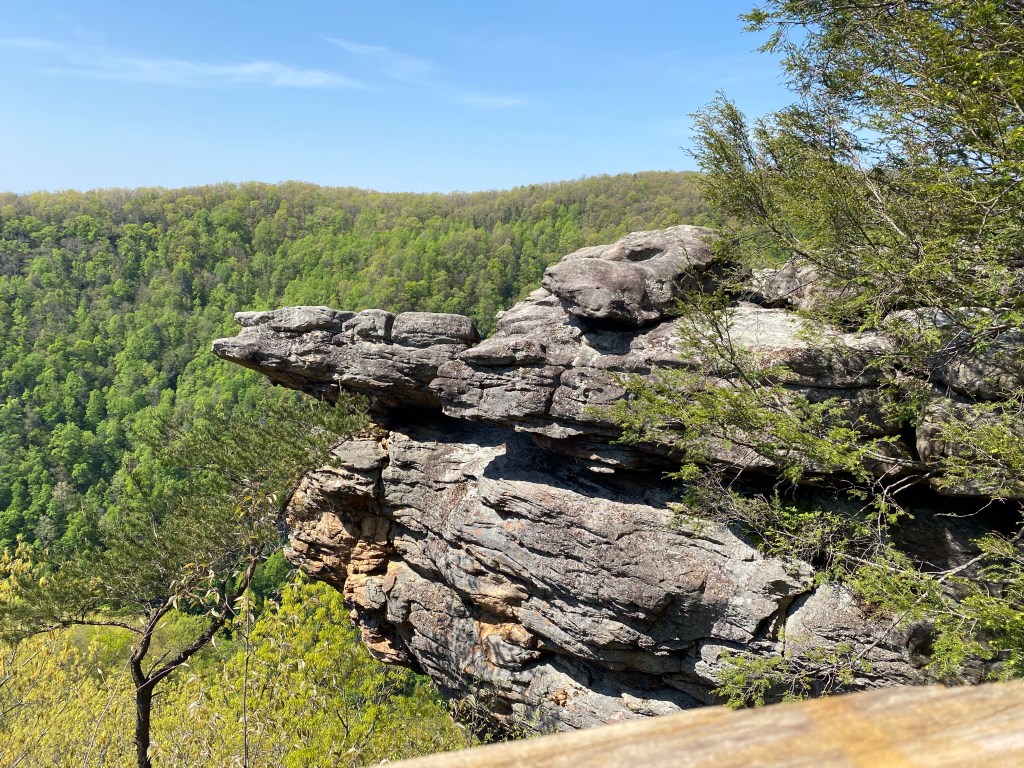The Overlook Trail was really a series of different rock outcroppings overlooking the mountains, the Russell Fork River and the Clinchfield train trestles… all connected by a foot path! It was such a beautiful day and have you noticed the birds seem to sing louder in spring? The air was filled with their music! You will have to turn up the volume for the little video snippet below.