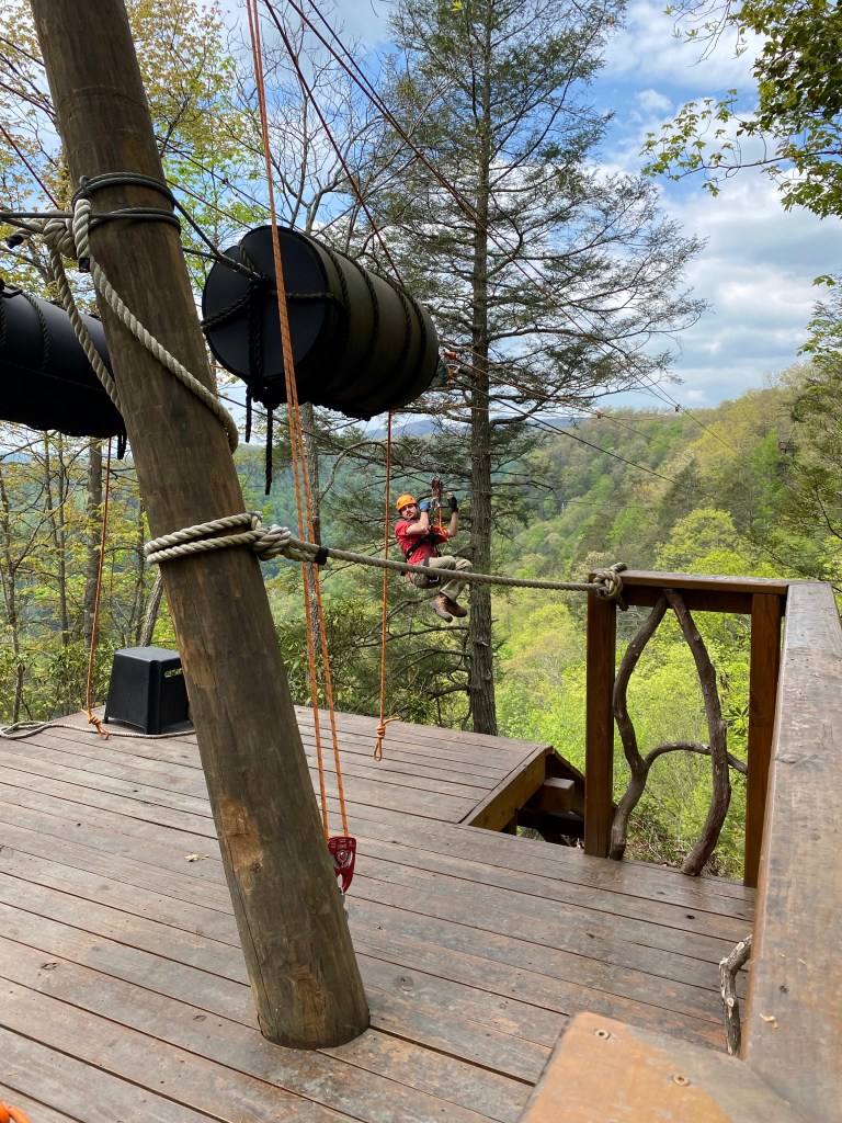 Right above this overlook they have a zip line. Today, they were making the first dry run of the season to check things out. We tried to talk Ruth Ann into trying it out but for some reason…she refused!