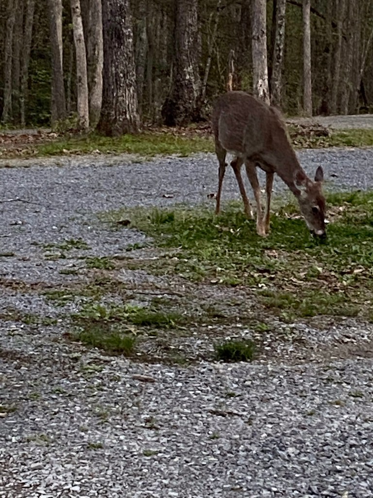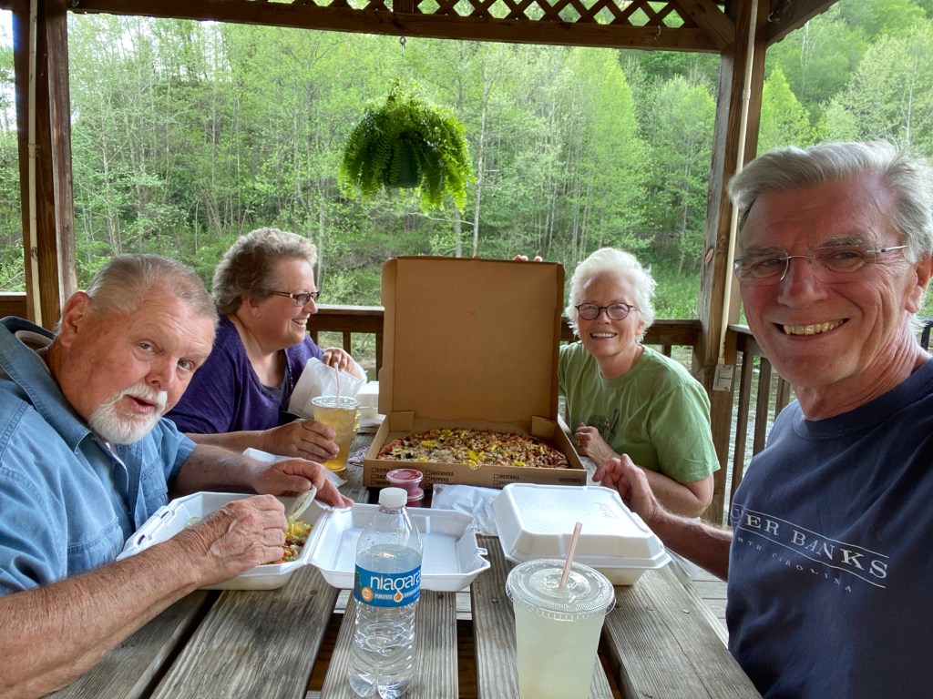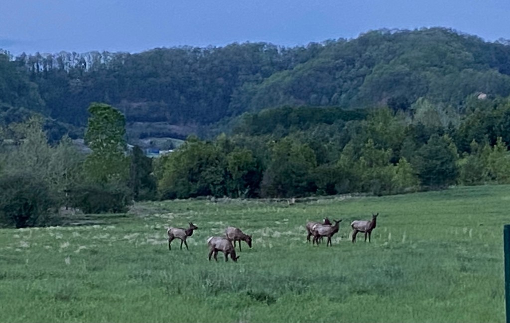 Ran down to the sleepy little town of Haysi for a pizza for dinner. Still no eating in but they had this nice little pavilion overlooking the river. So VERY windy…we had to hold onto everything. Thankfully, our hair is attached…if not it would have blown down to the river! We drove back up to Southern Gap and looked for the elk this evening on our own.