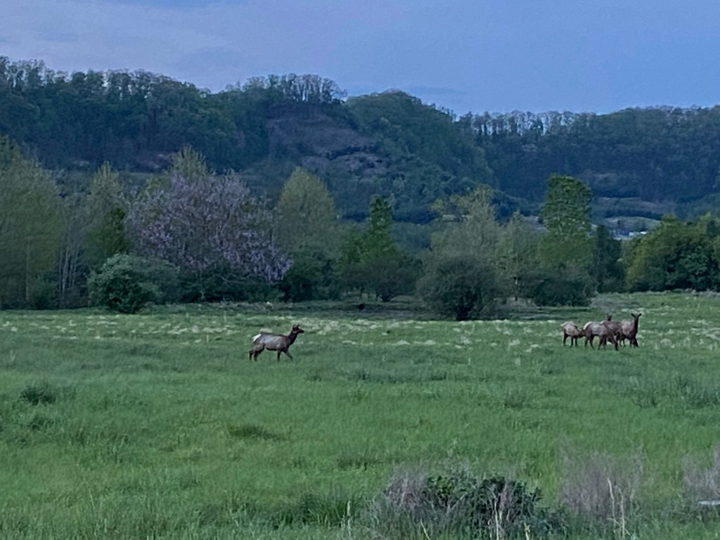 We had our own private viewing! In the fall the antlers will be something for the male elk to mew or bark about. Those sounds are how they communicate.